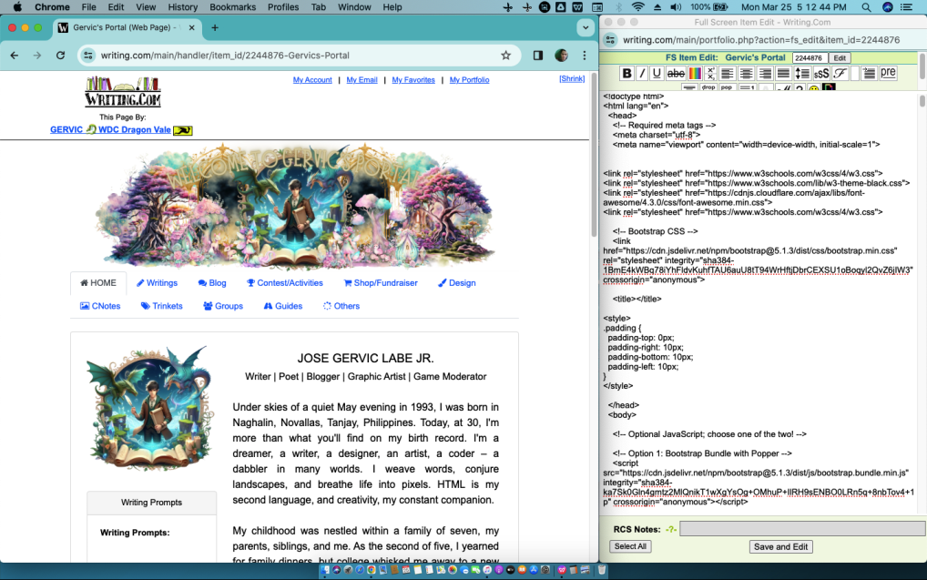 ![]() How To: Webpage Creation Your made-easy guide create a Webpage using a combination of WritingML and HTML Building webpages on Writing.com offers a uniquely flexible experience. While a basic understanding of HTML (HyperText Markup Language) certainly provides a strong foundation, it's not an absolute requirement. Our platform's WritingML codes are designed to simplify the process, allowing you to focus on content and design rather than complex code structures. These codes seamlessly integrate with HTML, giving you the freedom to customize your pages with whichever approach feels most comfortable. Whether you're a seasoned web developer or someone just starting out, Writing.com aims to make webpage creation accessible. Sample Webpages: Want to Order a Webpage? Visit Note: Webpage Item is only available to Premium and Premium Plus Membership. Visit Free and Paid Membership Benefits or "Compare Free and Paid Membership Benefits" for more details. This tutorial is on-going construction but already have the basic information you'll need in building a webpage. Sources: W3Shools.Com Getbootstrap.Com